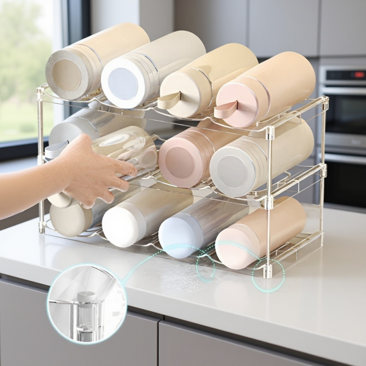 魔法瓶カップラック透明家庭用ウォーターカップ収納ラックリビングルームデスクトップ多層スタッキングカップ収納ラック